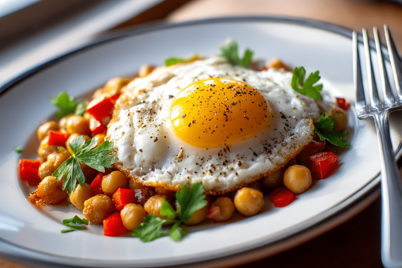 Chickpea Fried Eggs Recipe features crispy seasoned chickpeas topped with perfectly fried eggs for a protein-rich and flavorful meal.