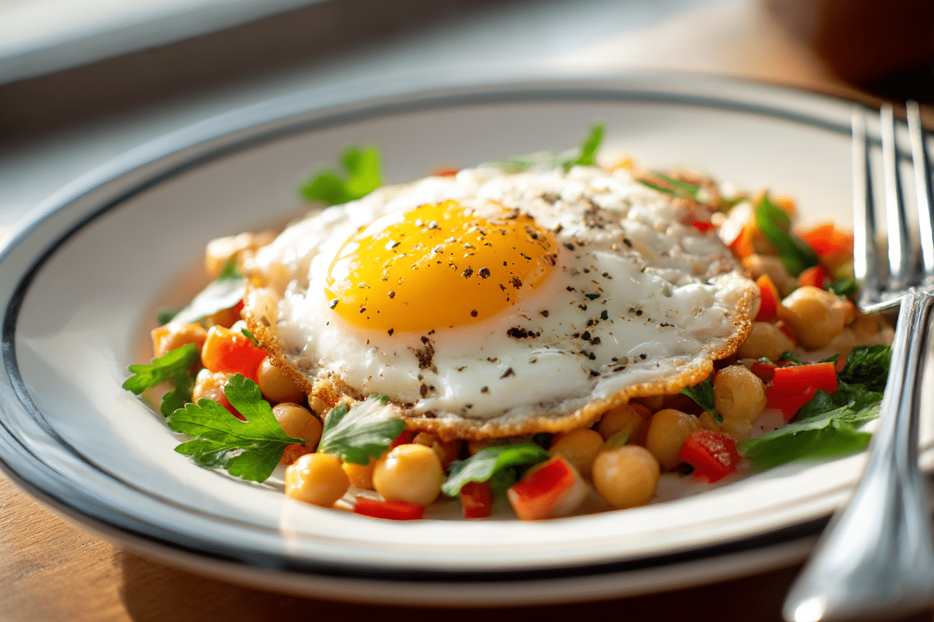 Chickpea Fried Eggs Recipe features crispy seasoned chickpeas topped with perfectly fried eggs for a protein-rich and flavorful meal.
