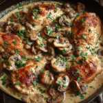 A creamy, savory chicken stroganoff with mushrooms, garlic, and sour cream — ready in 30 minutes for the ultimate comfort food experience.