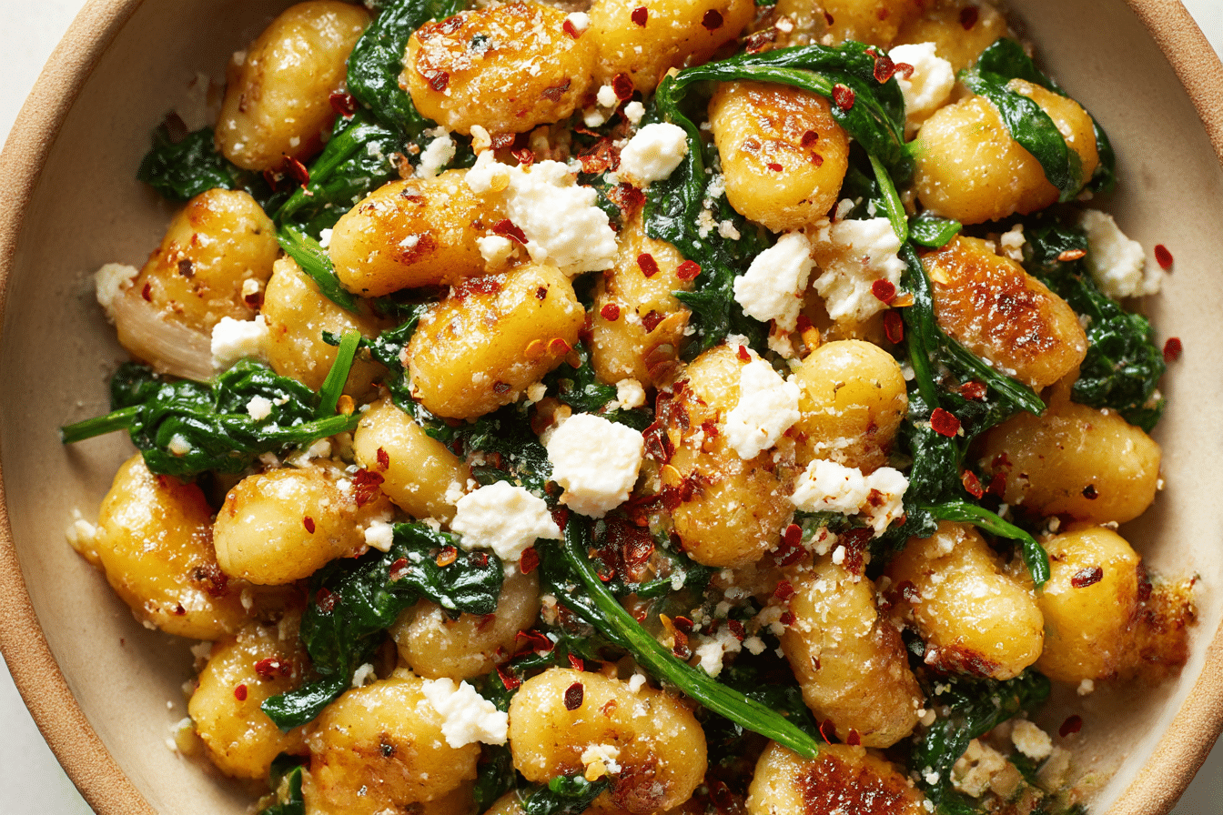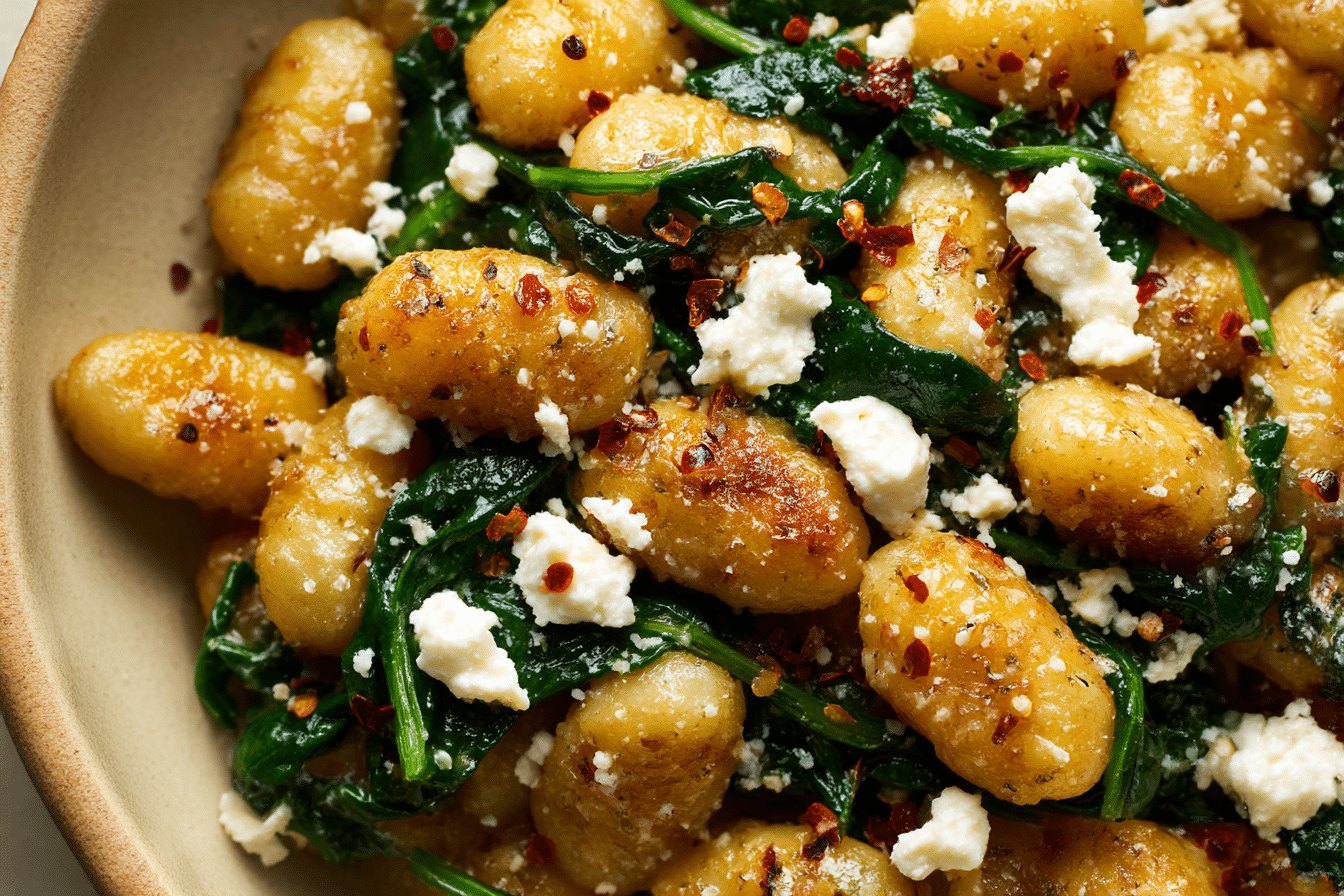 Creamy Gnocchi with Spinach and Feta Recipe | Healthy Dinner Inspiration is a beautifully balanced meal that brings together soft, pillowy gnocchi with vibrant greens and tangy cheese. The creamy sauce gently coats each bite without feeling heavy, while fresh spinach adds color and freshness.
