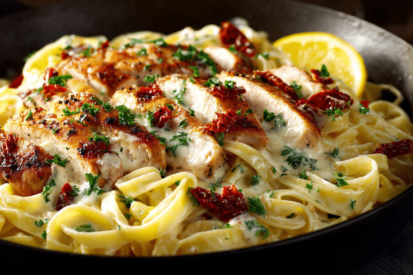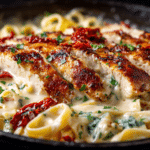 Tender chicken and pasta tossed in a creamy sun-dried tomato and Parmesan sauce — this one-skillet “Marry Me Chicken Pasta” is bold, rich, and ready in under 45 minutes.