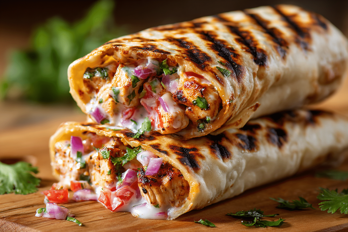Smoky grilled chicken, creamy ranch, melty cheese, and seasoned rice wrapped in a warm tortilla and grilled to perfection — a bold, easy Tex-Mex favorite.
