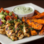 This Grilled Herb Chicken Bowl with Sweet Potato Fries & Avocado Salsa is the ultimate feel-good meal — vibrant, nourishing, and packed with color, texture, and flavor. Each bowl features juicy grilled chicken seasoned with a fragrant herb blend, crispy roasted sweet potato fries, and a refreshing avocado salsa that brings brightness and balance to the plate.