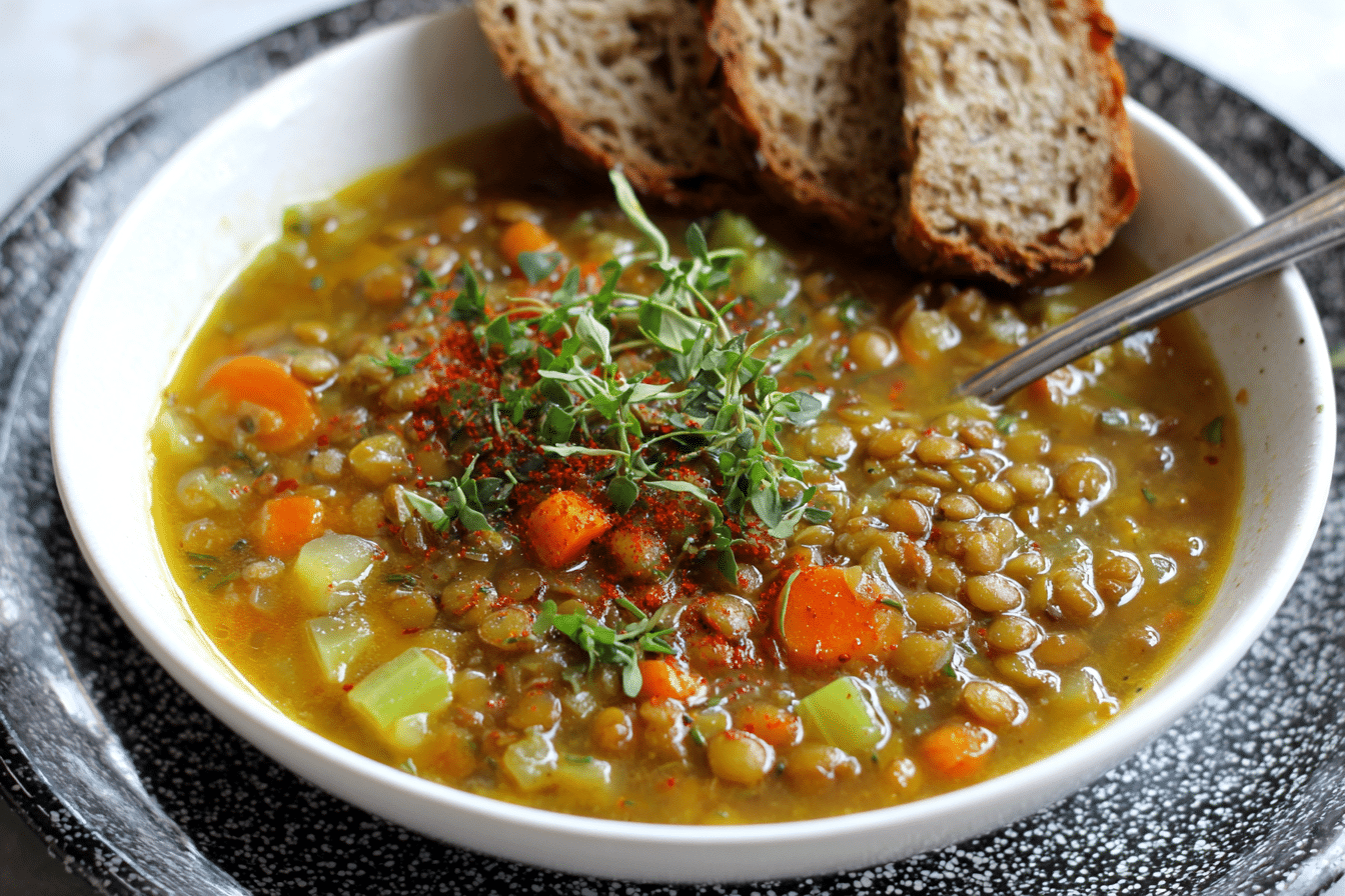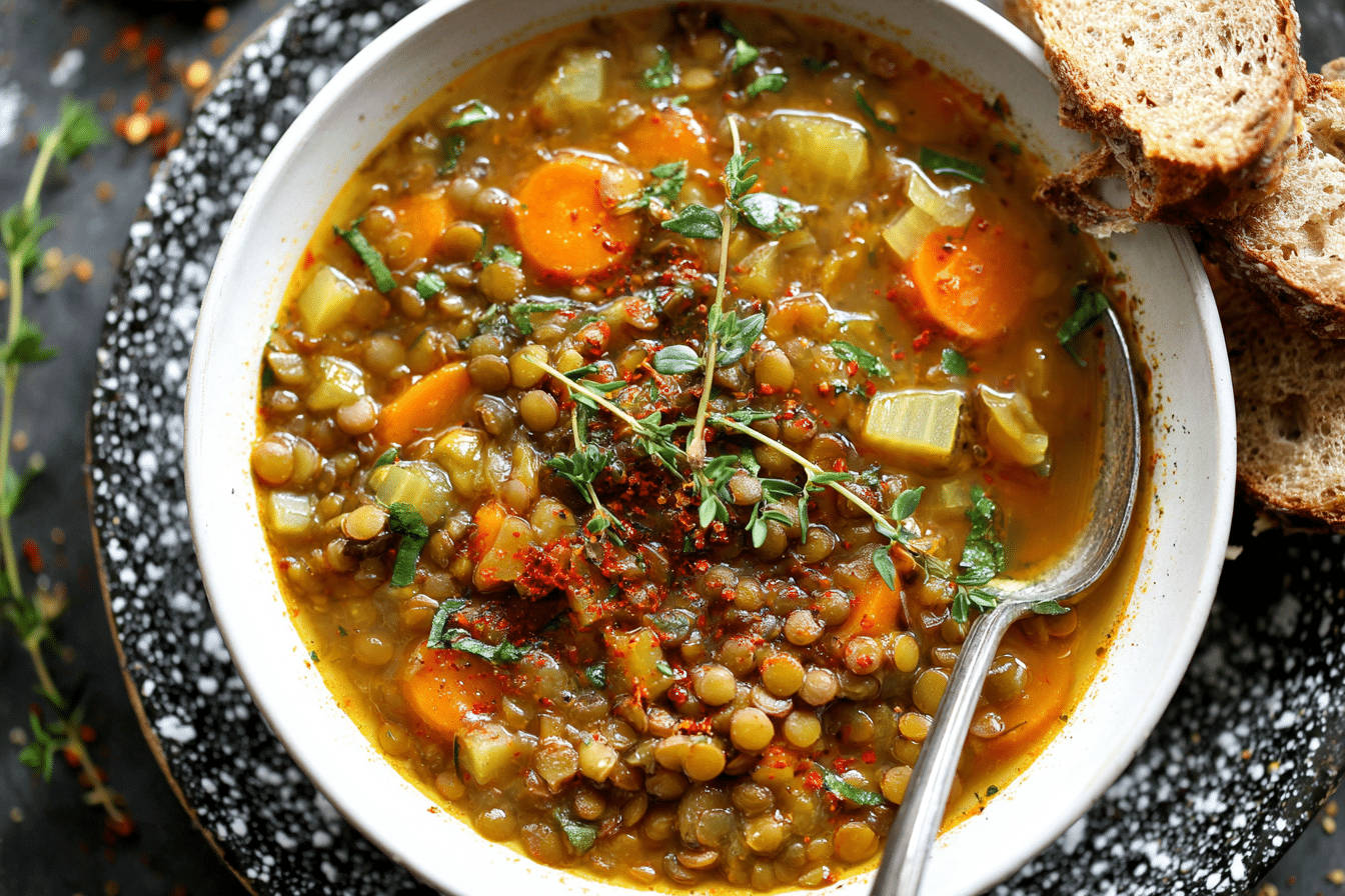 A hearty, plant-based lentil soup packed with vegetables, herbs, and savory spices. Perfect for cozy dinners, meal prep, or healthy eating.