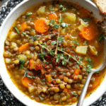 Whether you’re cooking for a weeknight dinner, a meal prep plan, or just something warming to sip on a chilly afternoon, this vegetarian lentil soup delivers flavor, fiber, and comfort in every spoonful.
