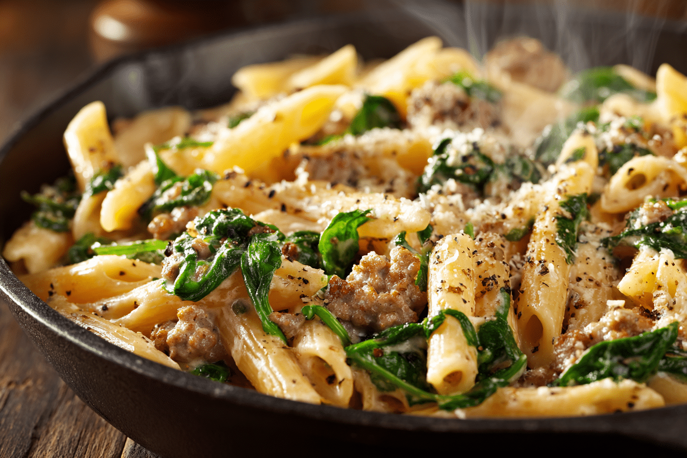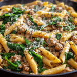 One-Pan Creamy Penne with Spinach and Italian Sausage – A Cozy 30-Minute Skillet Meal