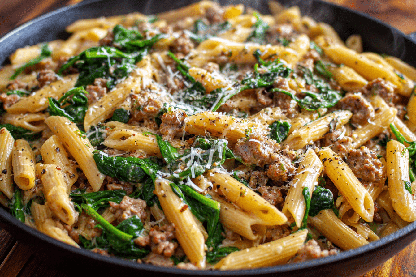 One-Pan Creamy Penne with Spinach and Italian Sausage – A Cozy 30-Minute Skillet Meal