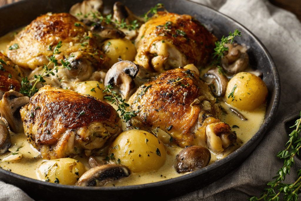 Herb Roasted Chicken in Creamy White Wine Sauce – Elegant, Comforting & Full of Flavor