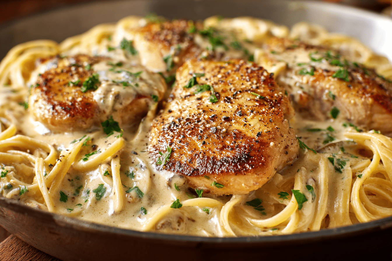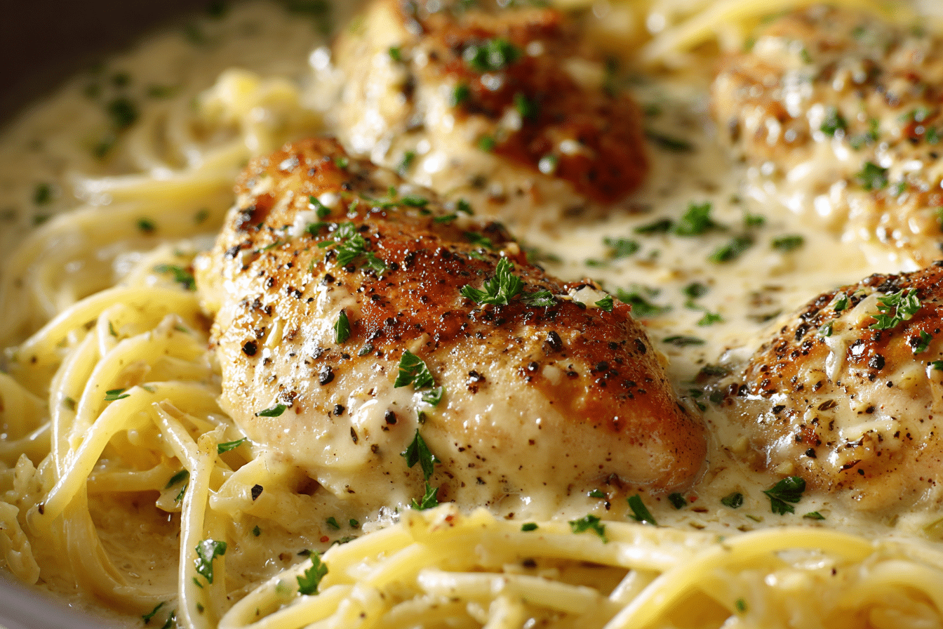 Spoon chicken and sauce generously over the pasta. Garnish with chopped parsley or a sprinkle of grated Parmesan if desired.