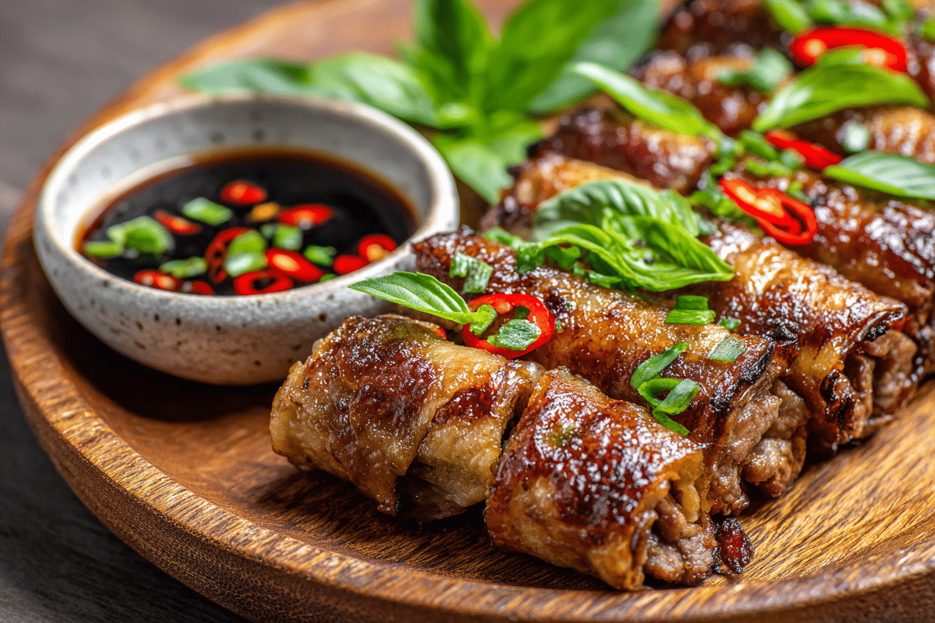 If you love the bold, aromatic flavors of Thai cuisine, Thai Basil Beef Rolls are a must-try. These hand-held bites combine the savory-sweet heat of Thai basil beef stir fry (Pad Krapow) with the freshness of crisp lettuce or rice paper wraps. They’re juicy, spicy, and full of umami, all wrapped up and ready to dip.
